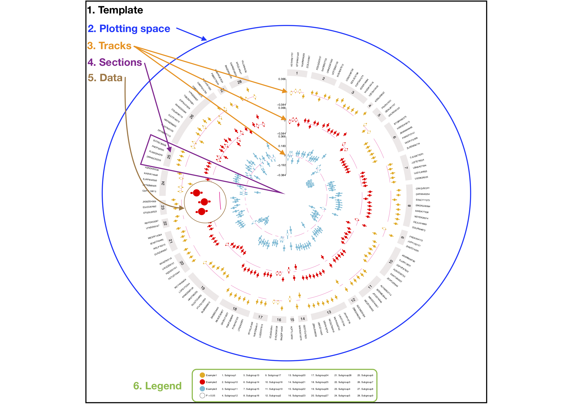 Circos plots in EpiViz are composed of several key elements: